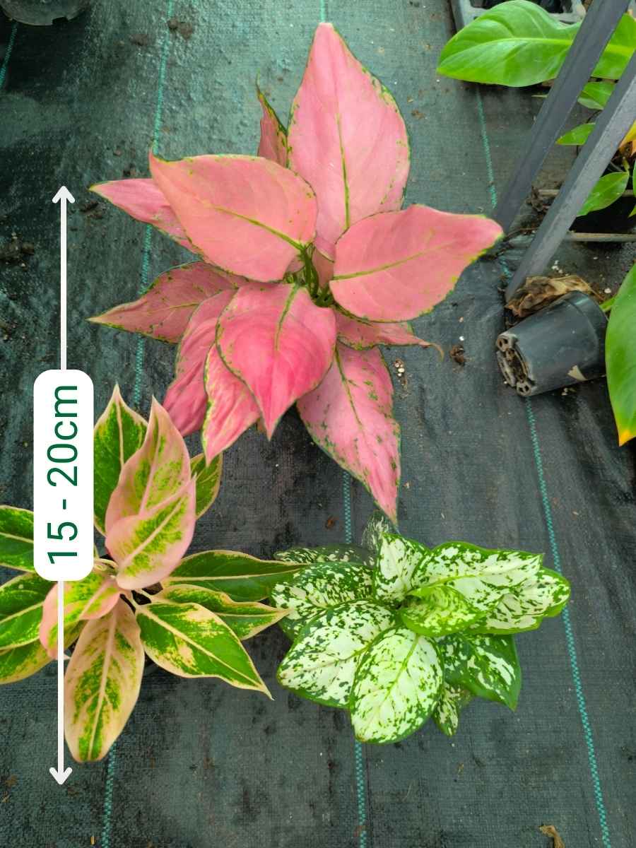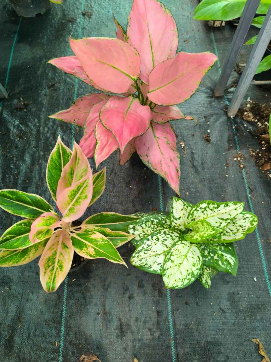 Three medium-sized plants of three stunning Aglaonema varieties: Pink Sword, Pink Aurora, Anjamani White Without Pot