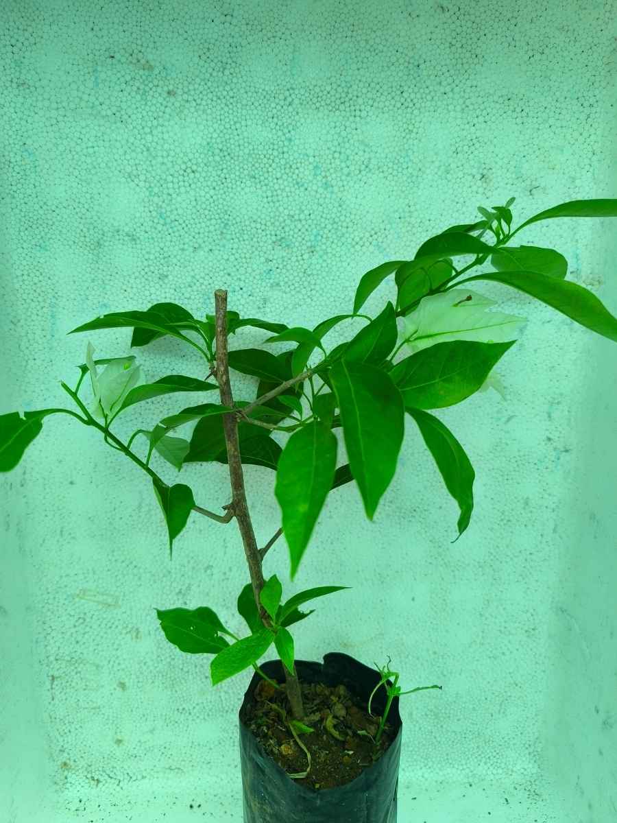 One healthy and well rooted Bougainvillea Pune White plant in a 4” poly bag with prepared soil mix.