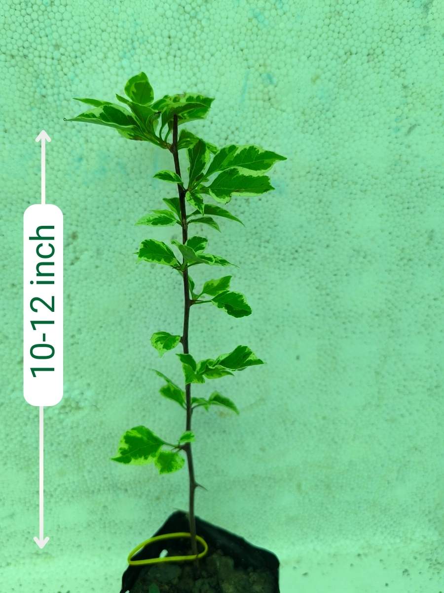 One healthy and well rooted Bougainvillea Rainbow Variegated plant in a 4” poly bag with prepared soil mix.