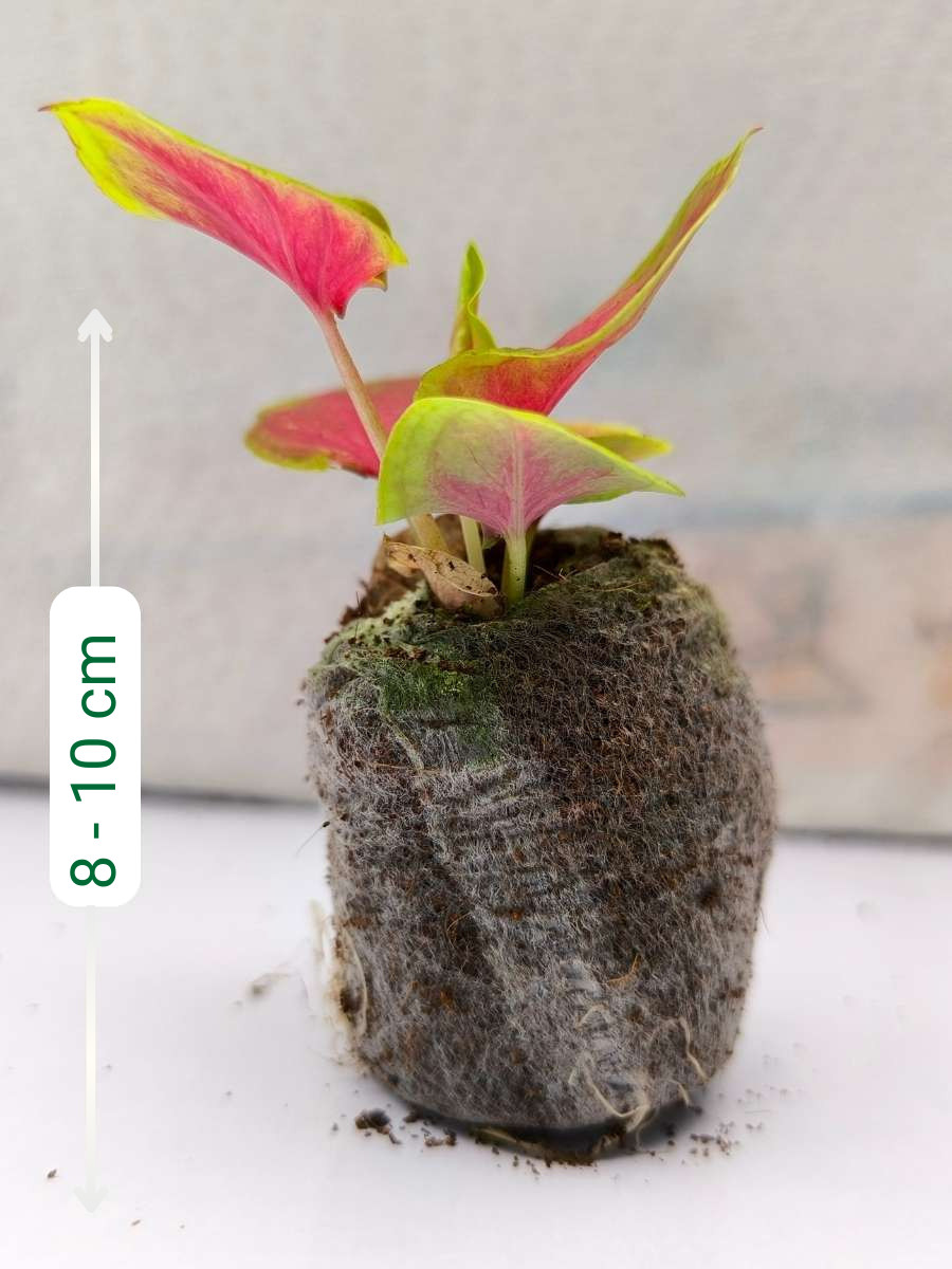 A healthy Thai Dwarf Caladium 'Hot Lips' (Tissue Culture Plant with bulb in Jiffy bag)