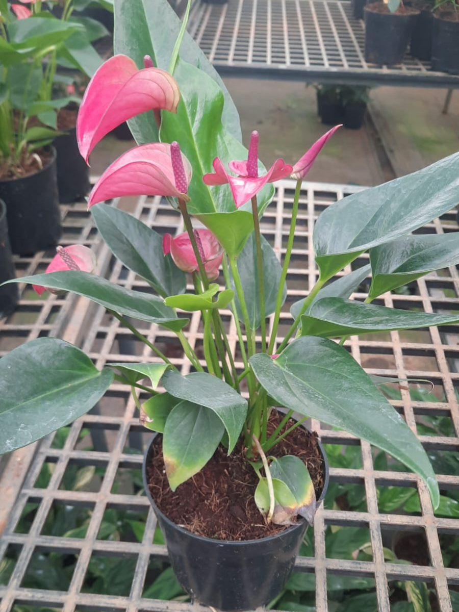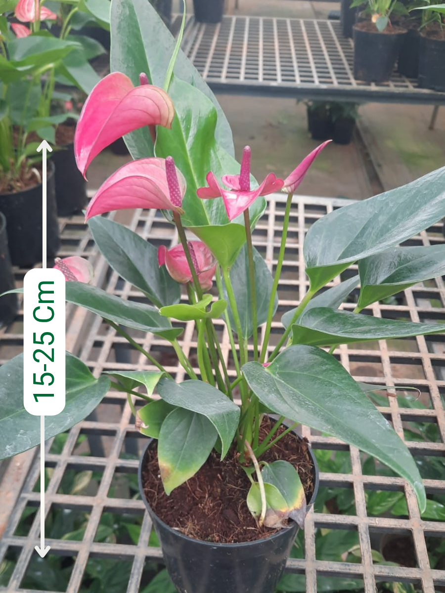 A healthy New Pink Miniature Anthurium Multi Shooted Plant with pot