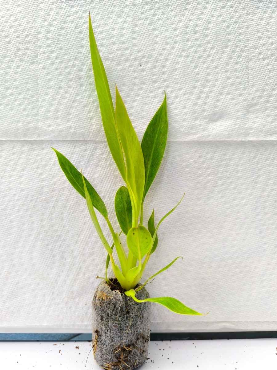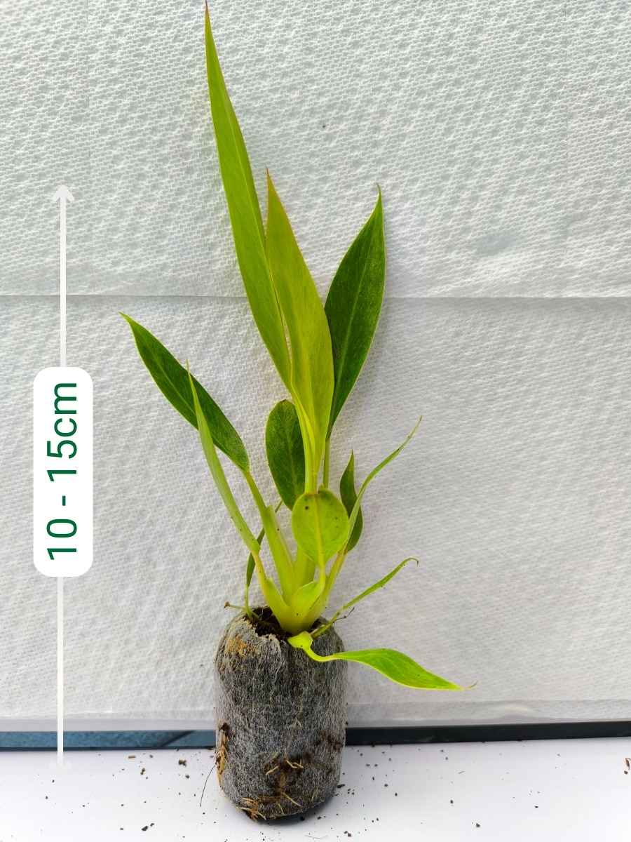 Plant in well-drained soil and water when the top inch feels dry. Avoid over-watering. Repot when the plant outgrows its jiffy bag for better growth.