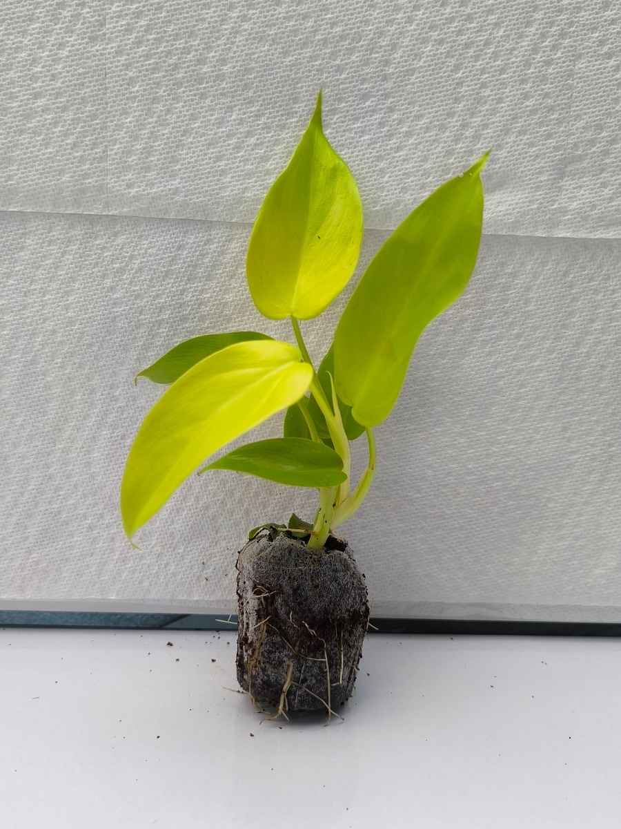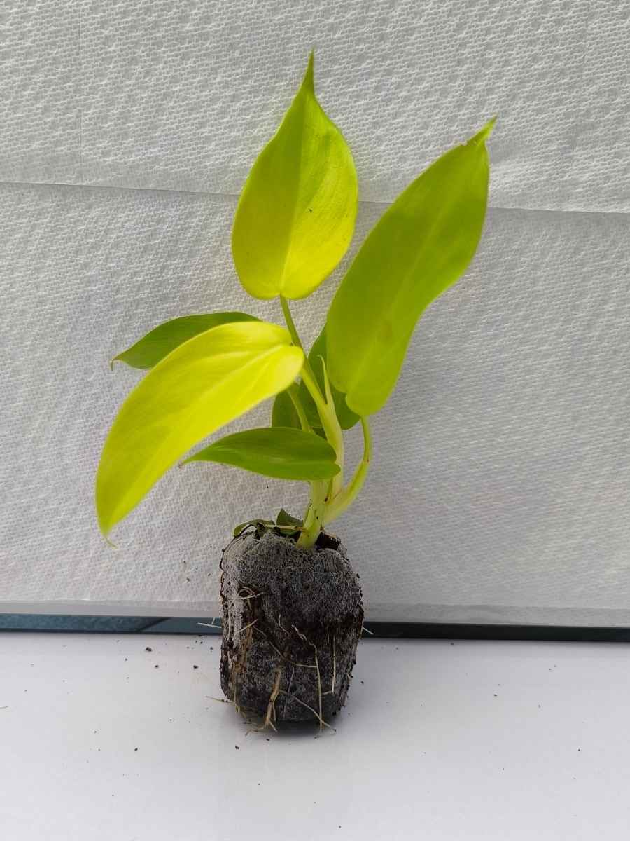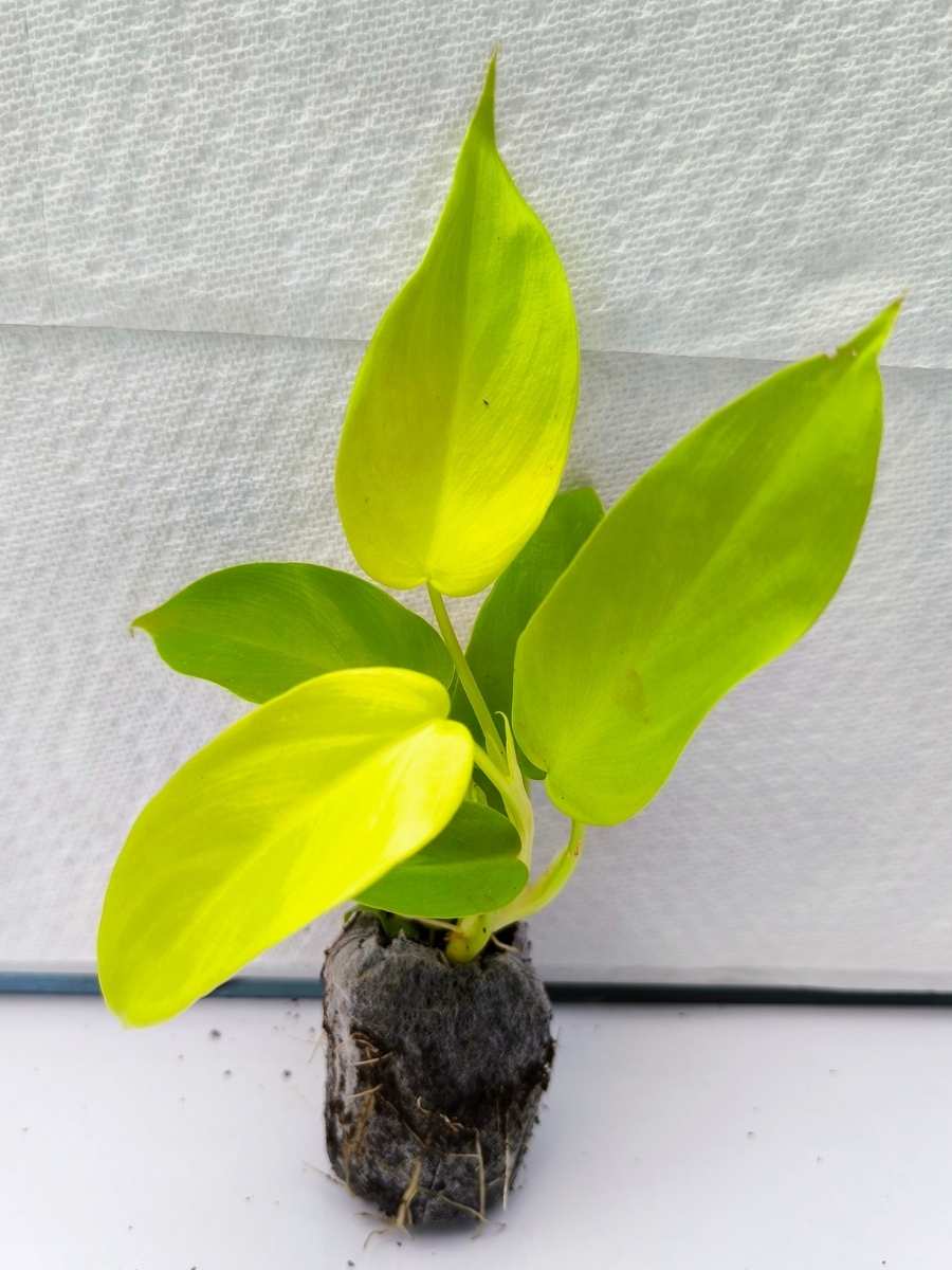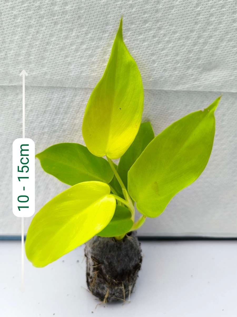 A healthy Philodendron Golden Violin Plant in a jiffy bag.