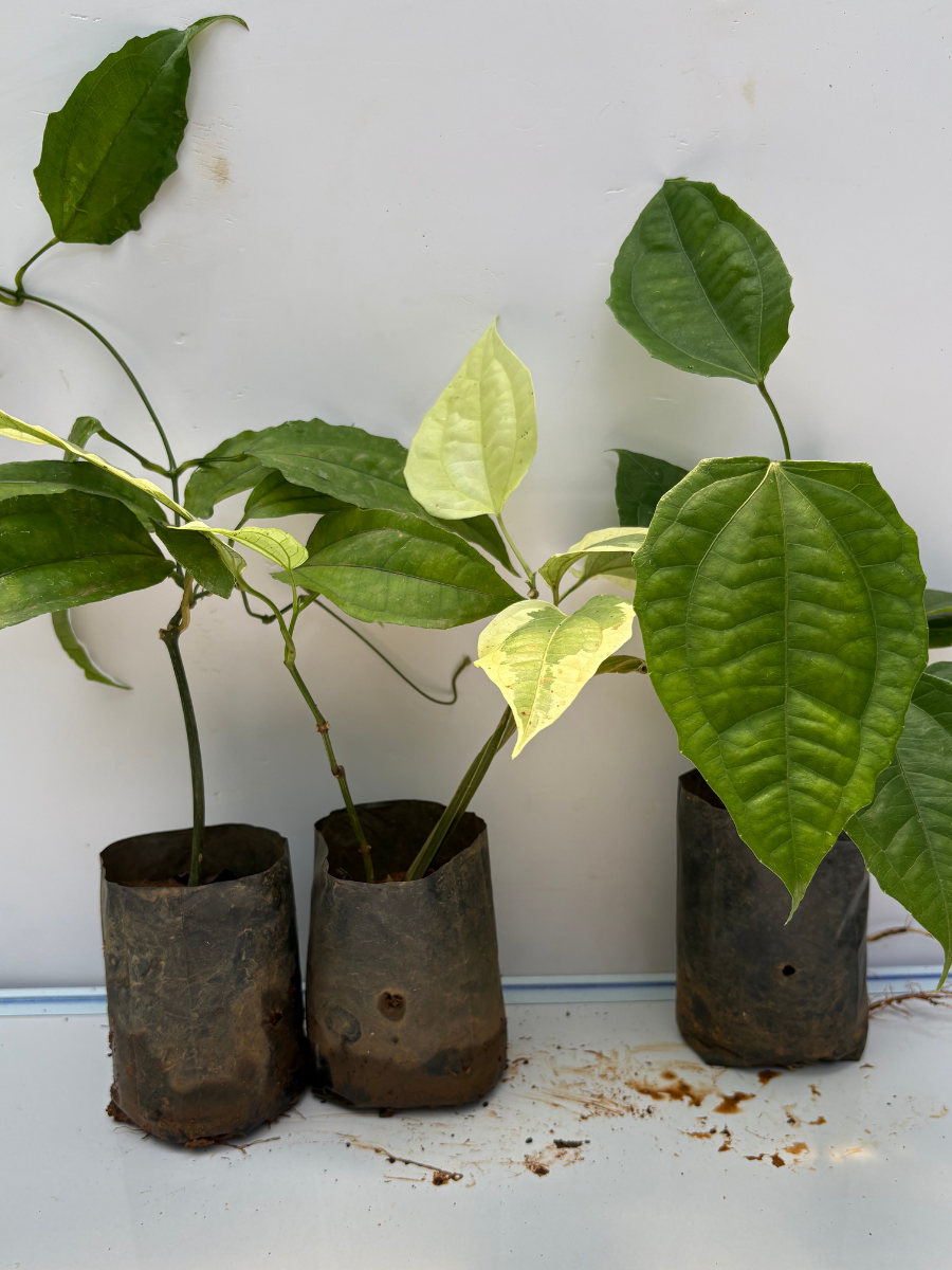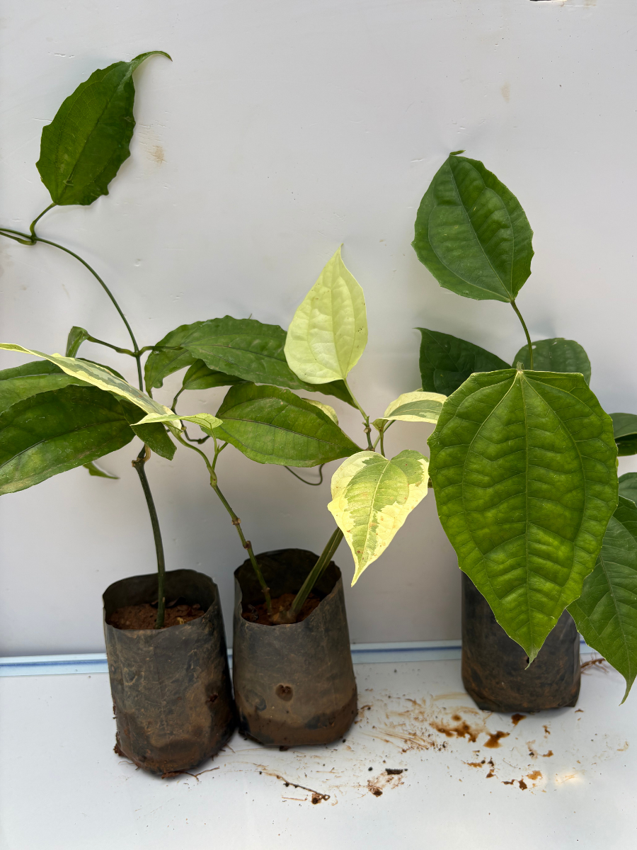 Three varieties of healthy Thunbergia Plants in Nursery bags (Thunbergia Mysorensis, Thunbergia Variegated and Thunbergia Coccinea.