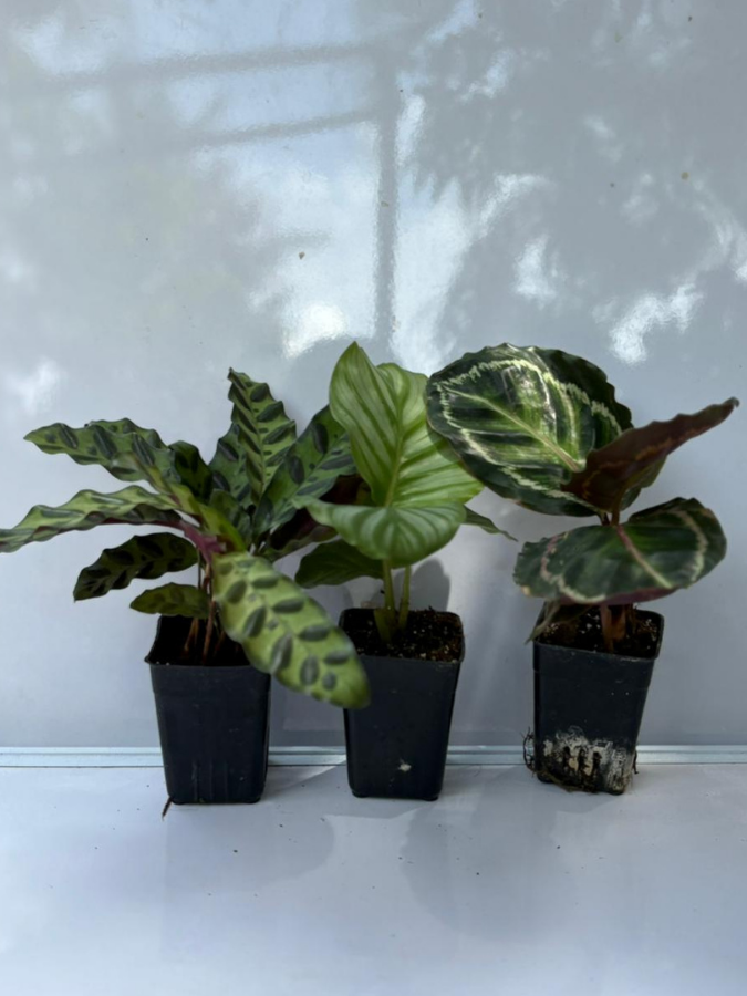 Combo set of Three stunning Calathea plant varieties: Calathea Orbifolia+Calathea Rattlesnake+Calathea Roseopicta (With Pot)