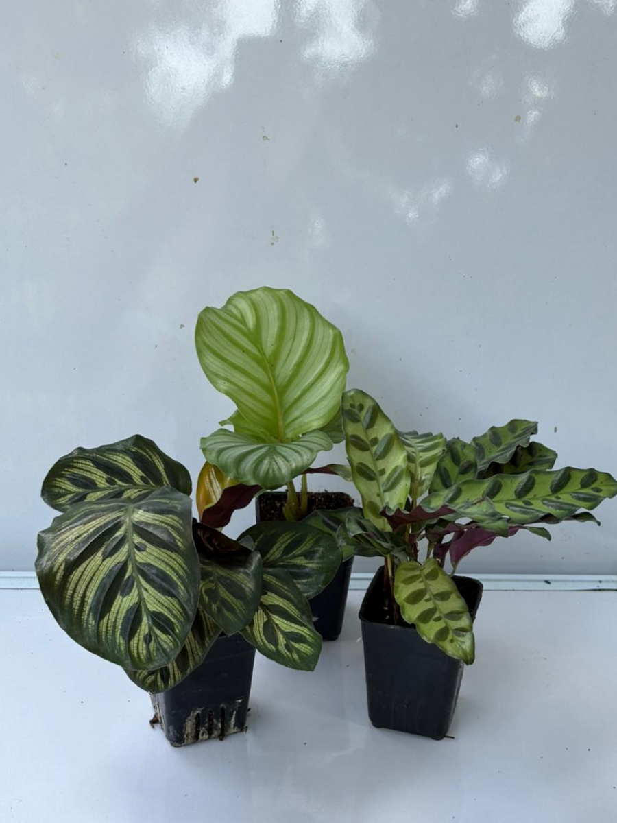 Combo set of Three stunning Calathea plant varieties: Calathea Orbifolia+Calathea Makoyana+Calathea Insignis (With Pot)